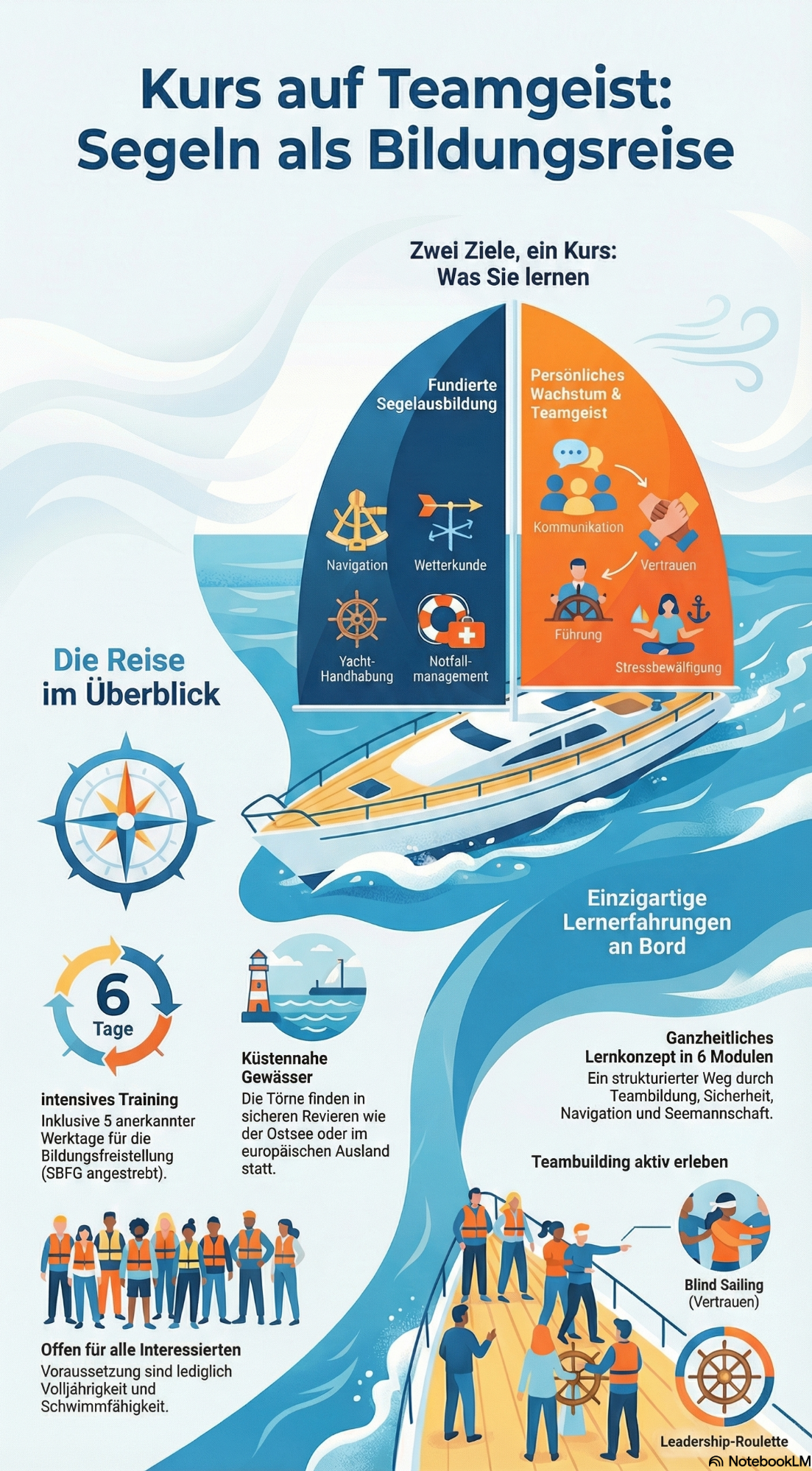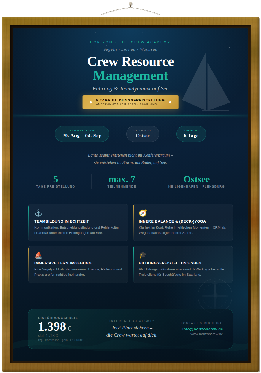 - Navigation des Miteinanders: Wir reagieren auf Wind, Wetter und Team – Führung auf Augenhöhe wird spürbar.